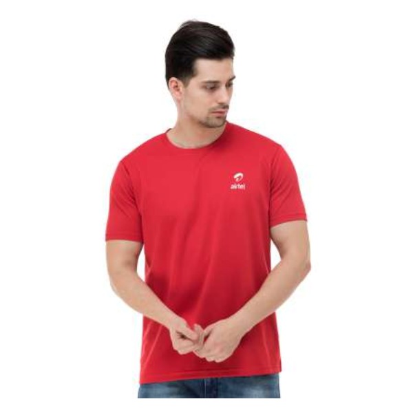 Bulk Red T-Shirt for corporate companies. Sweat absorbent, contrast band. Customise with logos and designs. Elevate corporate attire with style, comfort, and branding possibilities.